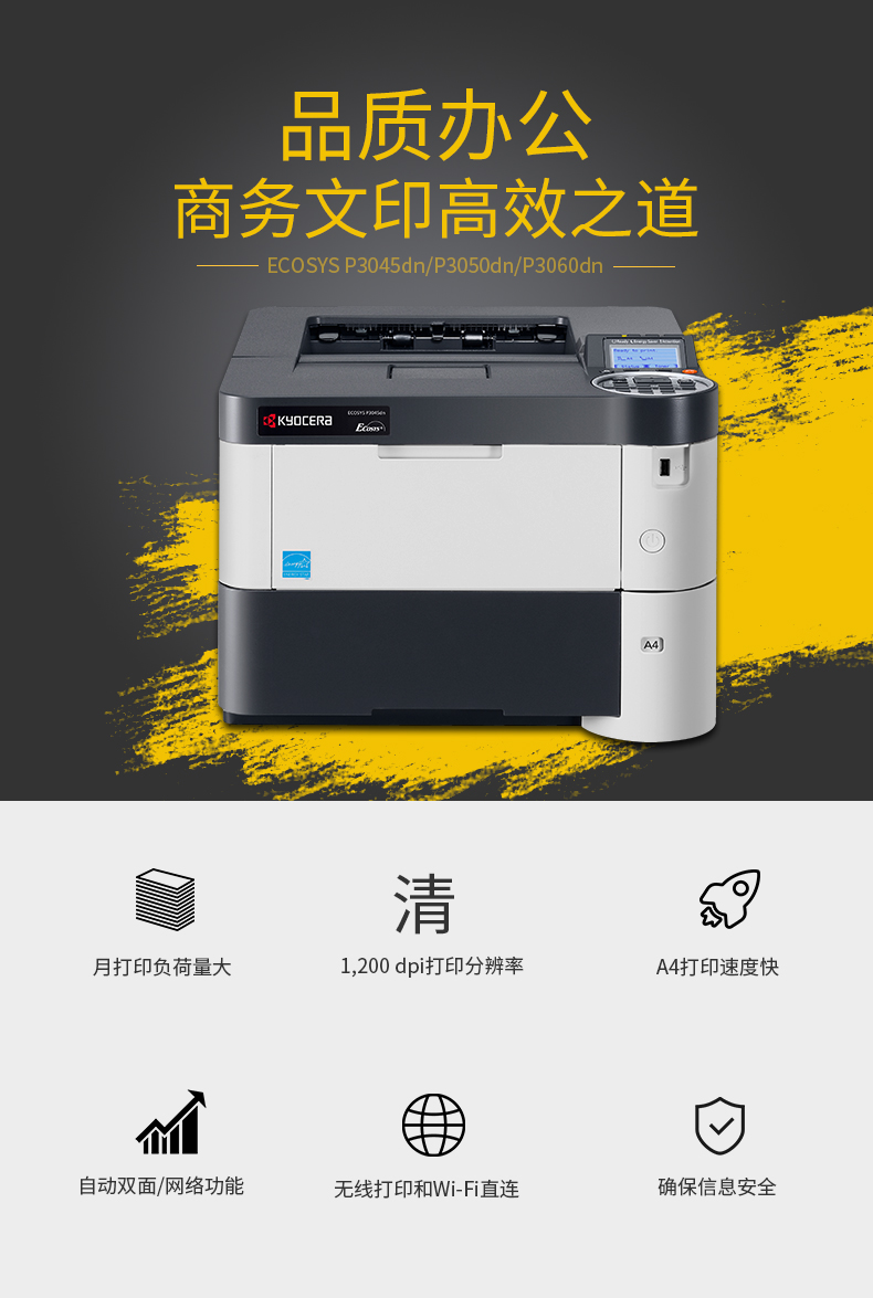 • 產(chǎn)品品牌:京瓷(KYOCERA)P3050dn激光打印機