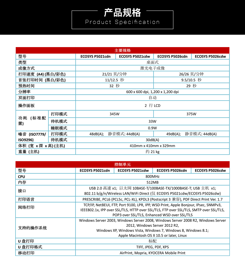 • 產(chǎn)品品牌:京瓷(KYOCERA)P5026cdn激光打印機(jī)