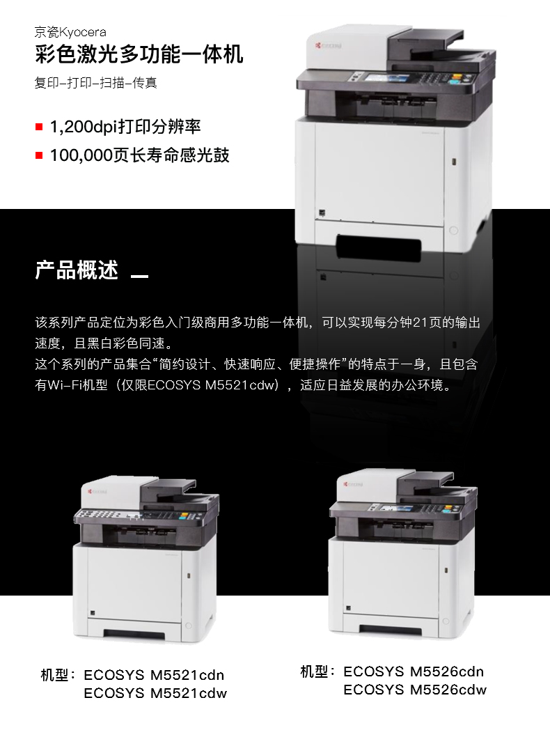 • 產(chǎn)品名稱:京瓷(KYOCERA)M5526cdw多功能一體機