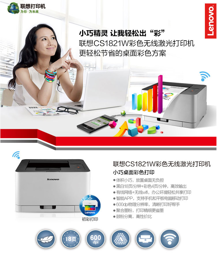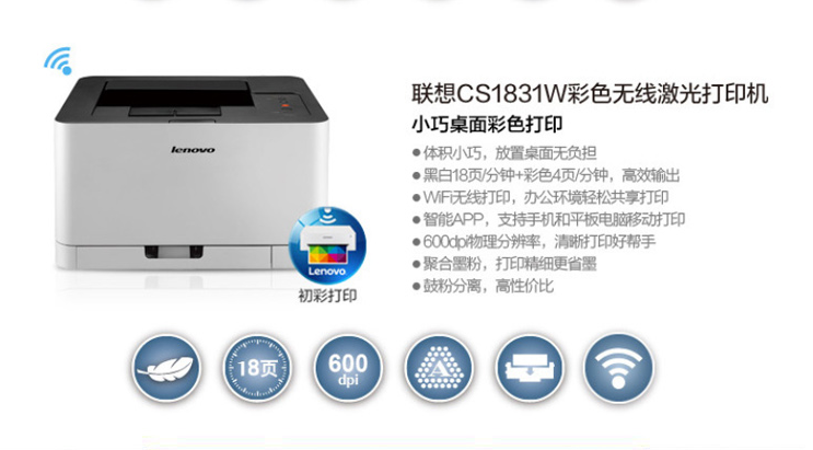 • 產(chǎn)品名稱:聯(lián)想(Lenovo)CS1831W彩色激光打印機(jī)