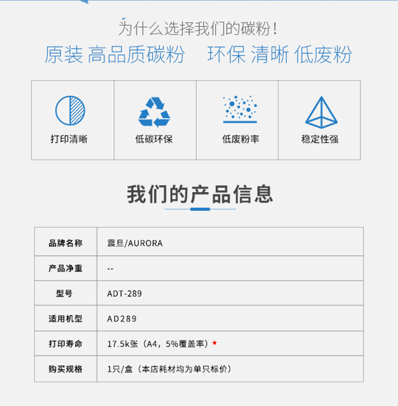 • 產品品牌:震旦 ADT-289復印機耗材粉盒碳粉適用于AD289
