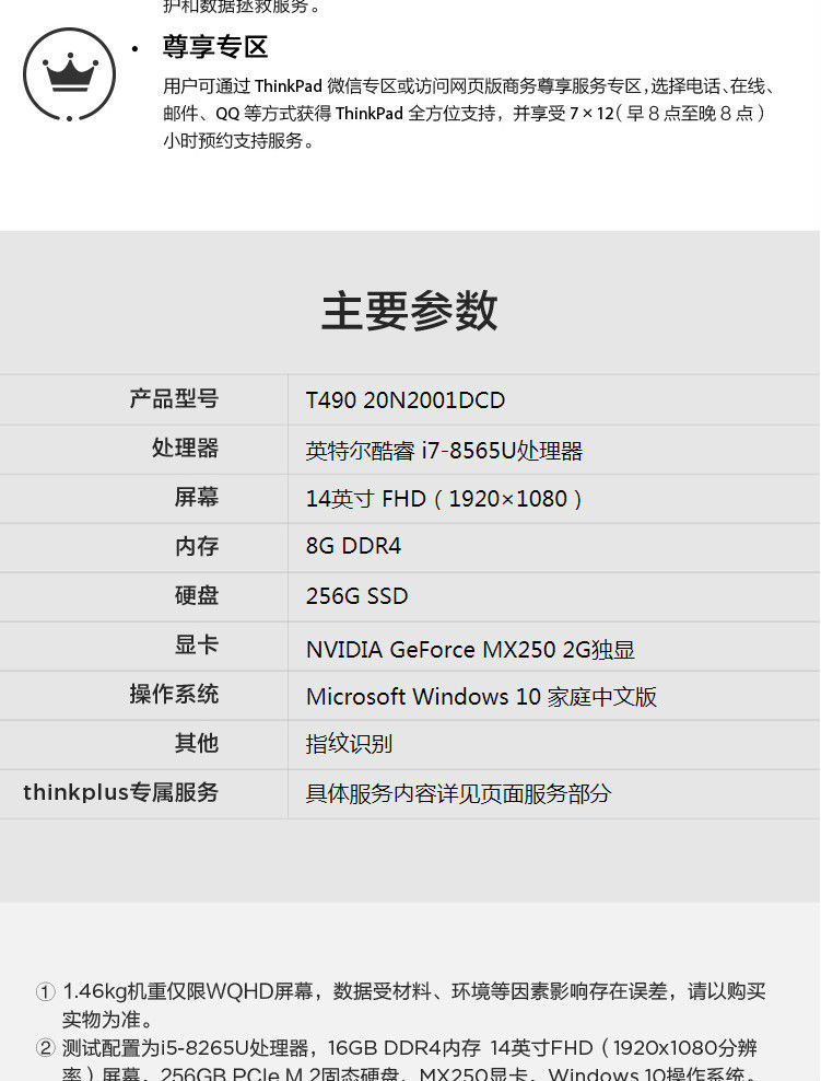 • 產(chǎn)品名稱:聯(lián)想ThinkPad T490 20N2001DCD 14英寸輕薄筆記本電腦 i7-8565U/8G/256GSSD/2G獨顯 FHD指紋識別