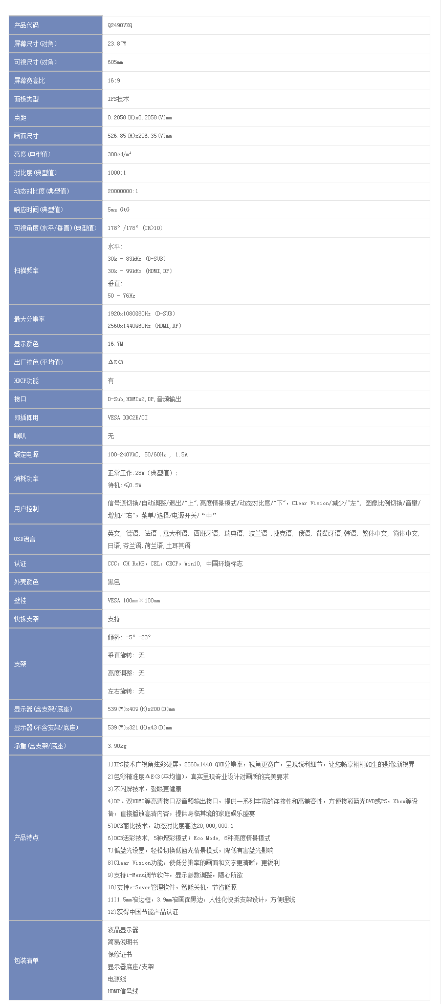 • 商品貨號 Q2490VXQ