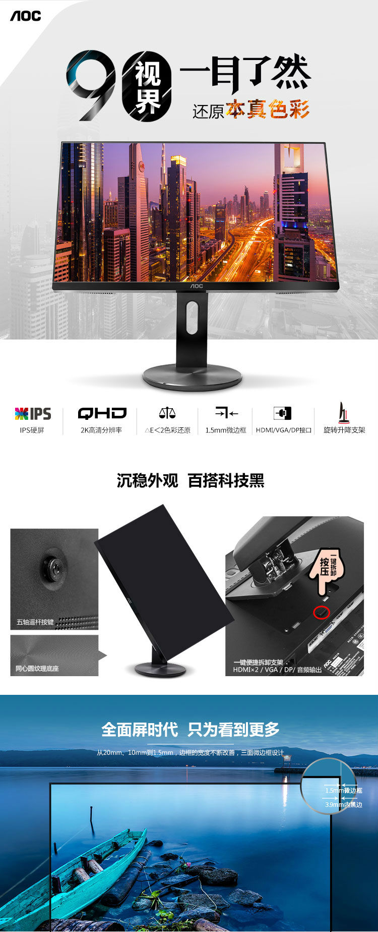 • 產(chǎn)品名稱:AOC顯示器 Q2490VXQ 23.8寸 IPS 2K無邊框高清液晶顯示器