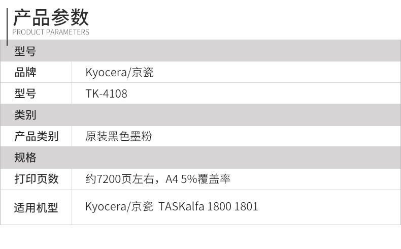 • 產(chǎn)品品牌:原裝正品京瓷TK-4108碳粉 粉盒適用TASKalfa 1800 1801