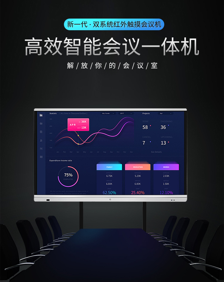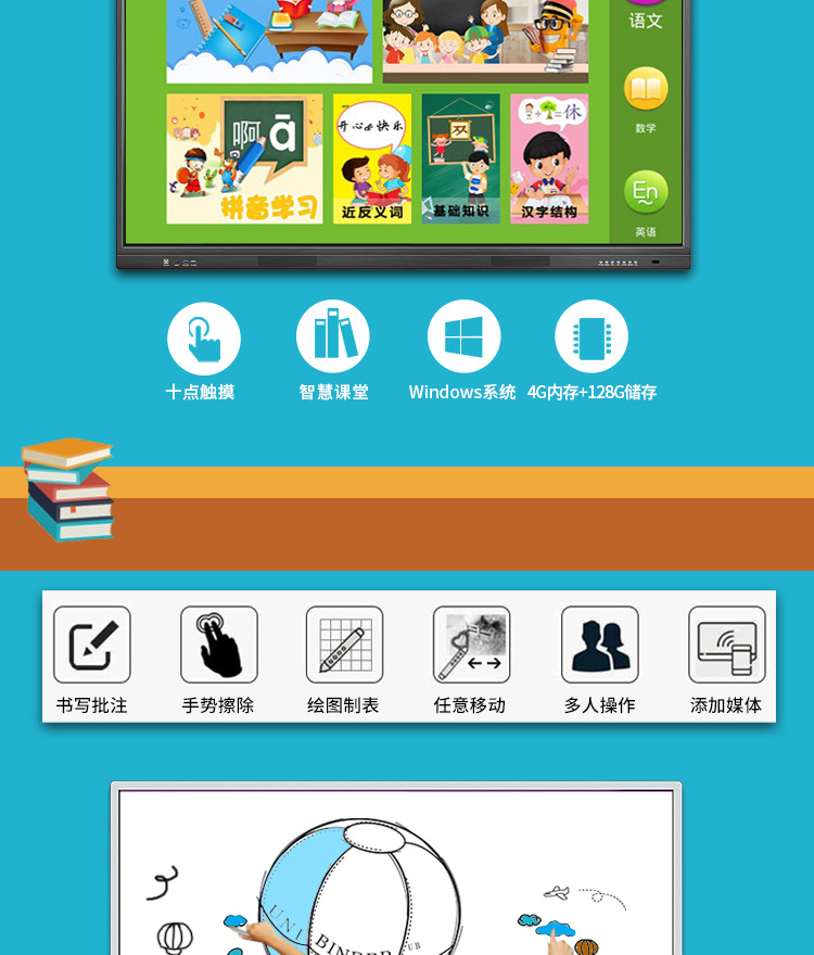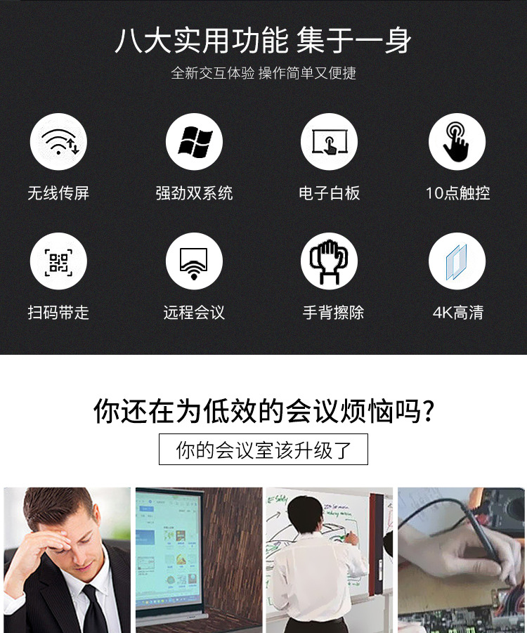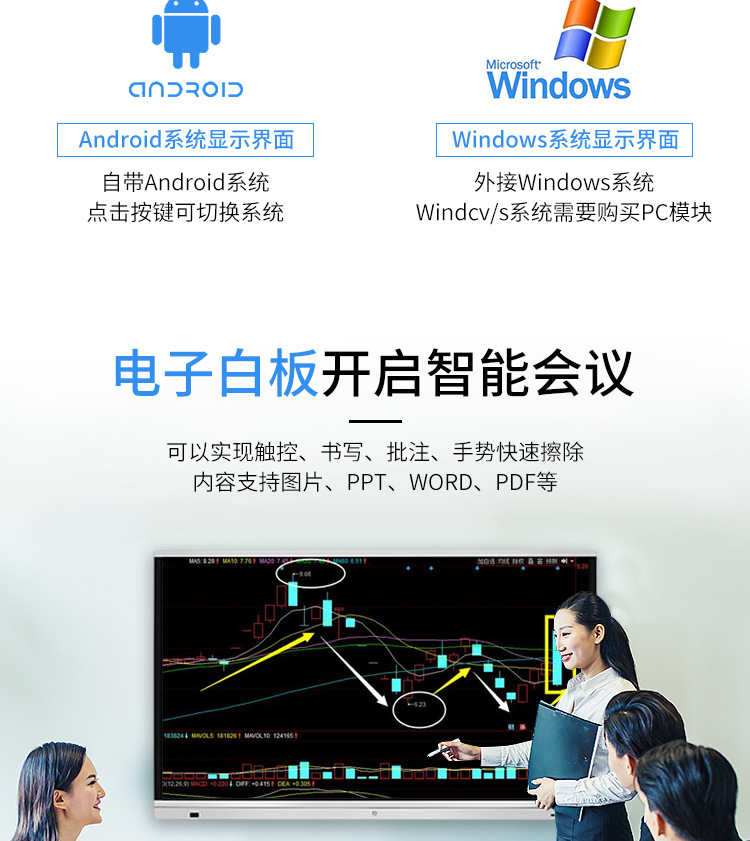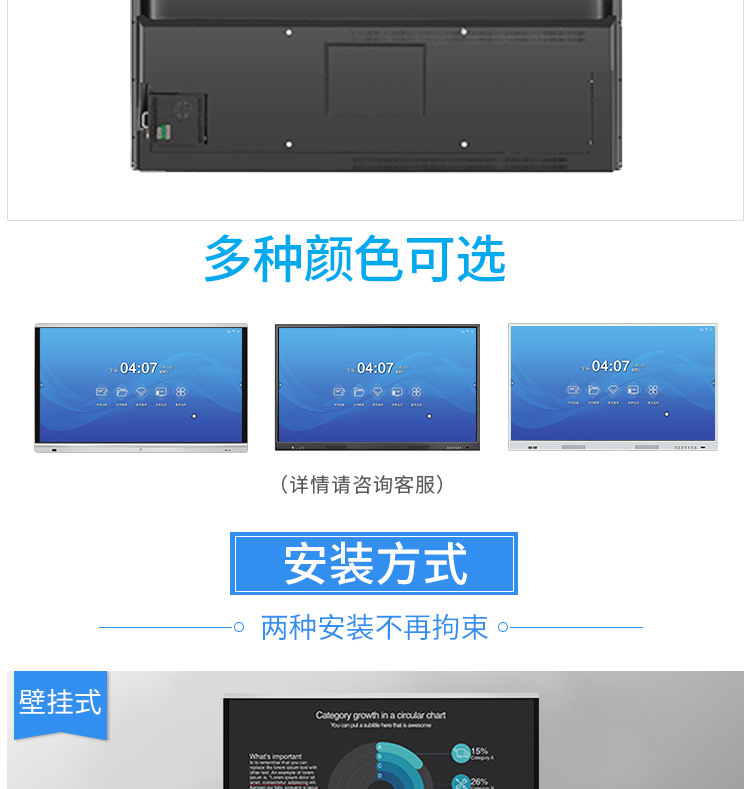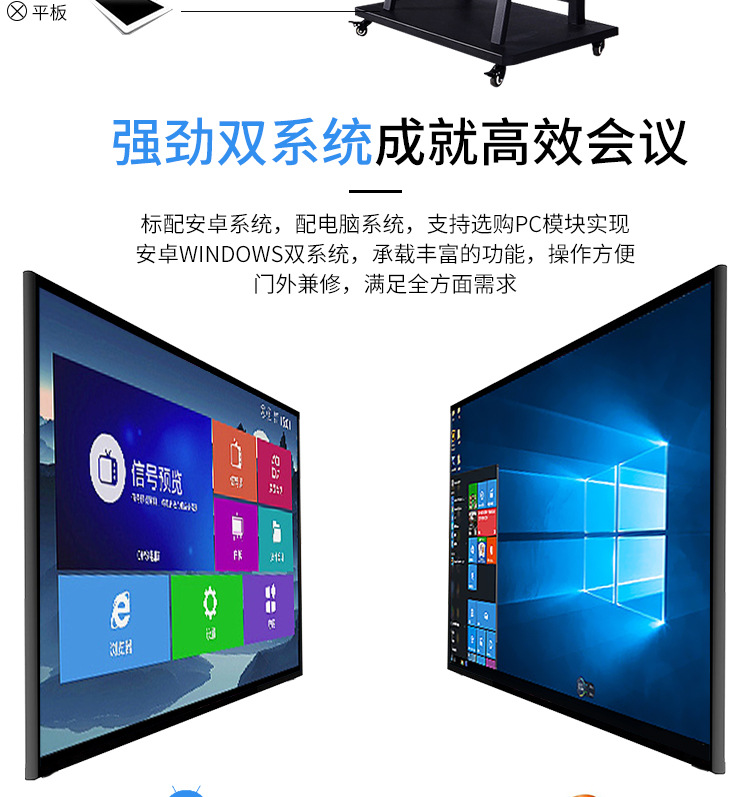 • 產(chǎn)品名稱(chēng):藍(lán)舟55/65/75/85/98寸雙系統(tǒng)教學(xué)觸摸一體機(jī)