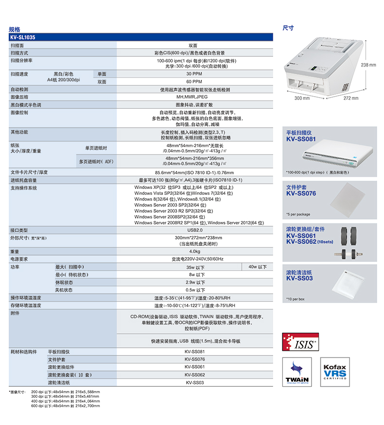 • 產(chǎn)品名稱(chēng):松下 KV-SL1035 彩色文檔掃描儀