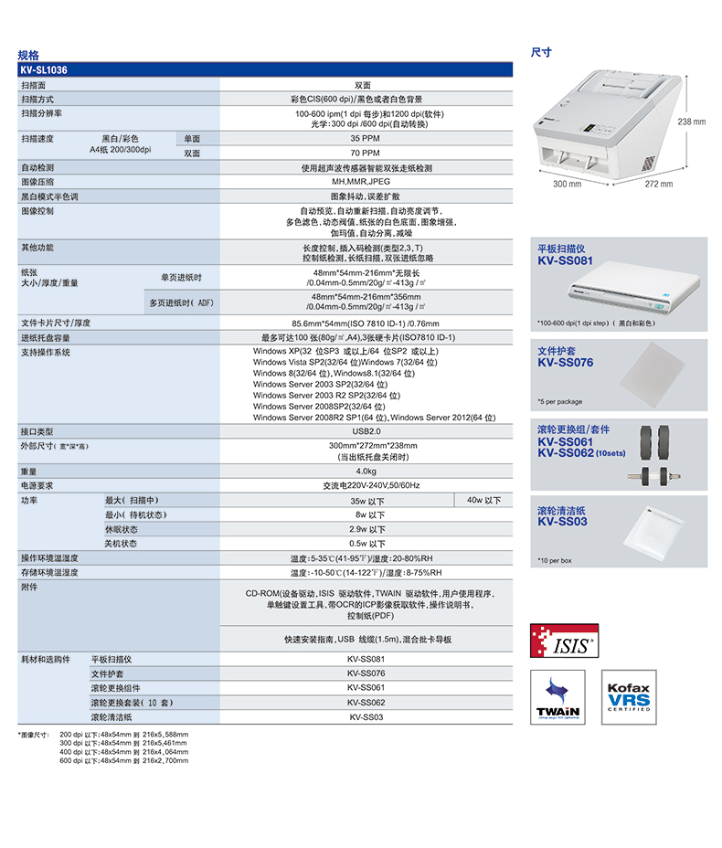 • 產(chǎn)品品牌:松下 KV-SL1036 彩色文檔掃描儀