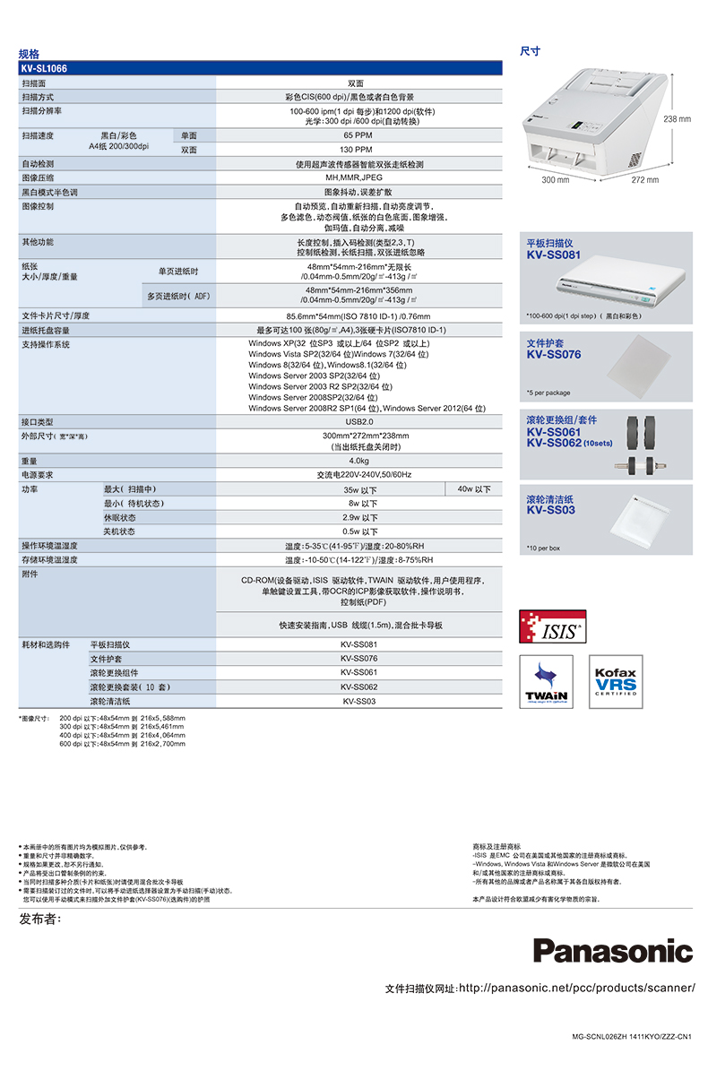 • 產(chǎn)品品牌:松下 KV-SL1066 彩色文檔掃描儀