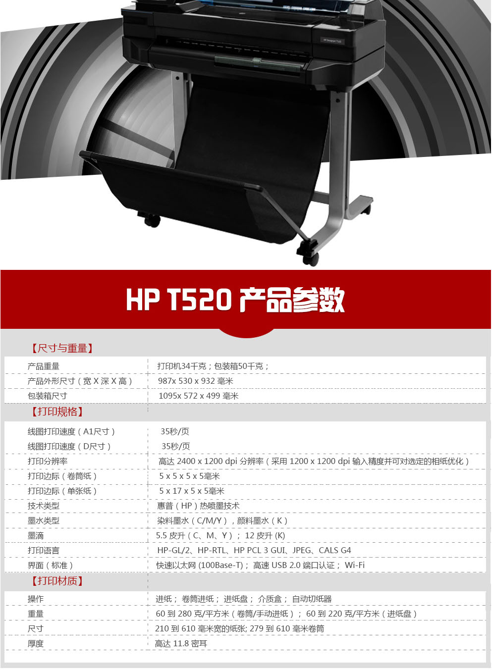 • 產(chǎn)品名稱:惠普(HP) Designjet T530大幅面打印機