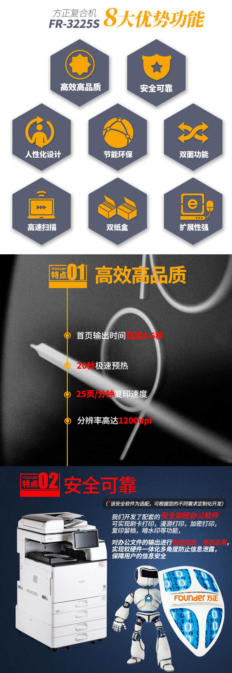 • 產(chǎn)品品牌:方正(Founder)FR3225S 多功能數(shù)碼復(fù)合機