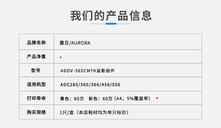• 產(chǎn)品品牌:原裝震旦 ADDV-365KCMY顯影組件適用ADC 285/365/366/456/556機(jī)型