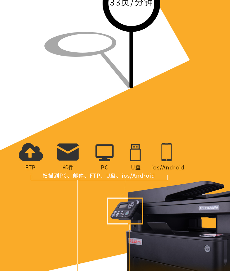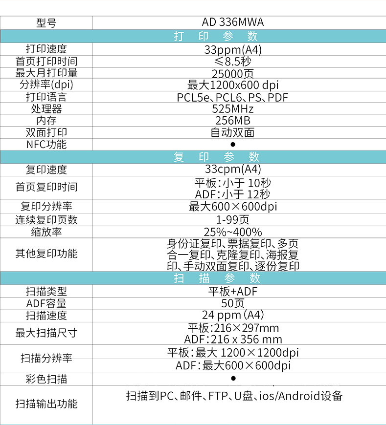 • 產(chǎn)品名稱:震旦打印機(jī) AD 336MWA A4多功能黑白激光一體機(jī) 黑色