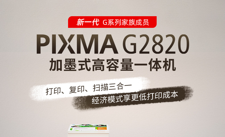 • 產(chǎn)品名稱:佳能G2820大容量可加墨彩色多功能一體機(jī)(打印/復(fù)印/掃描)