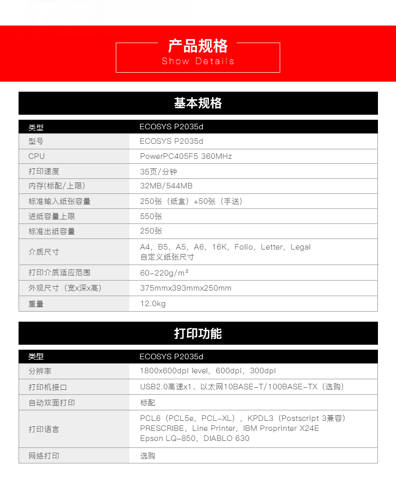 • 產(chǎn)品名稱:京瓷(KYOCERA)P2035d激光打印機(jī)